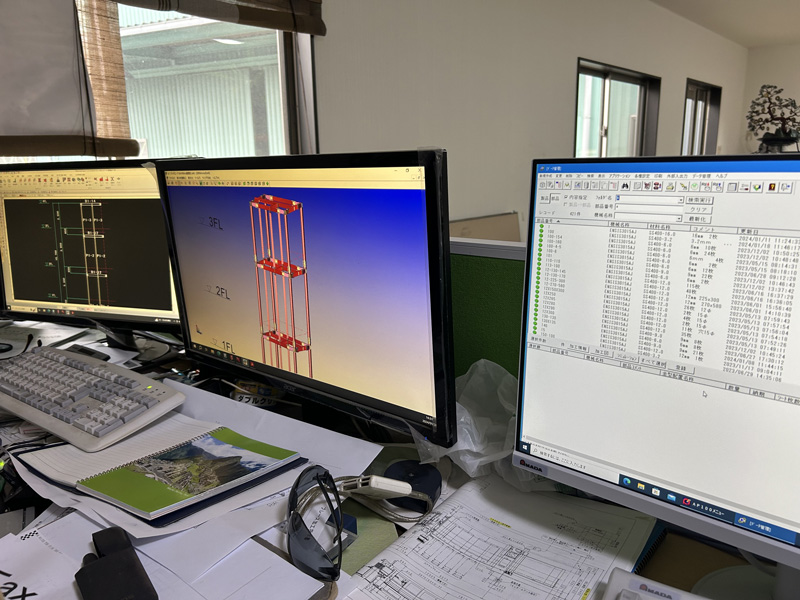 また工作図から始まり工場で製作した製品パーツを組立、建物のフレームを構築するまでのマネージメント業務を行っています。