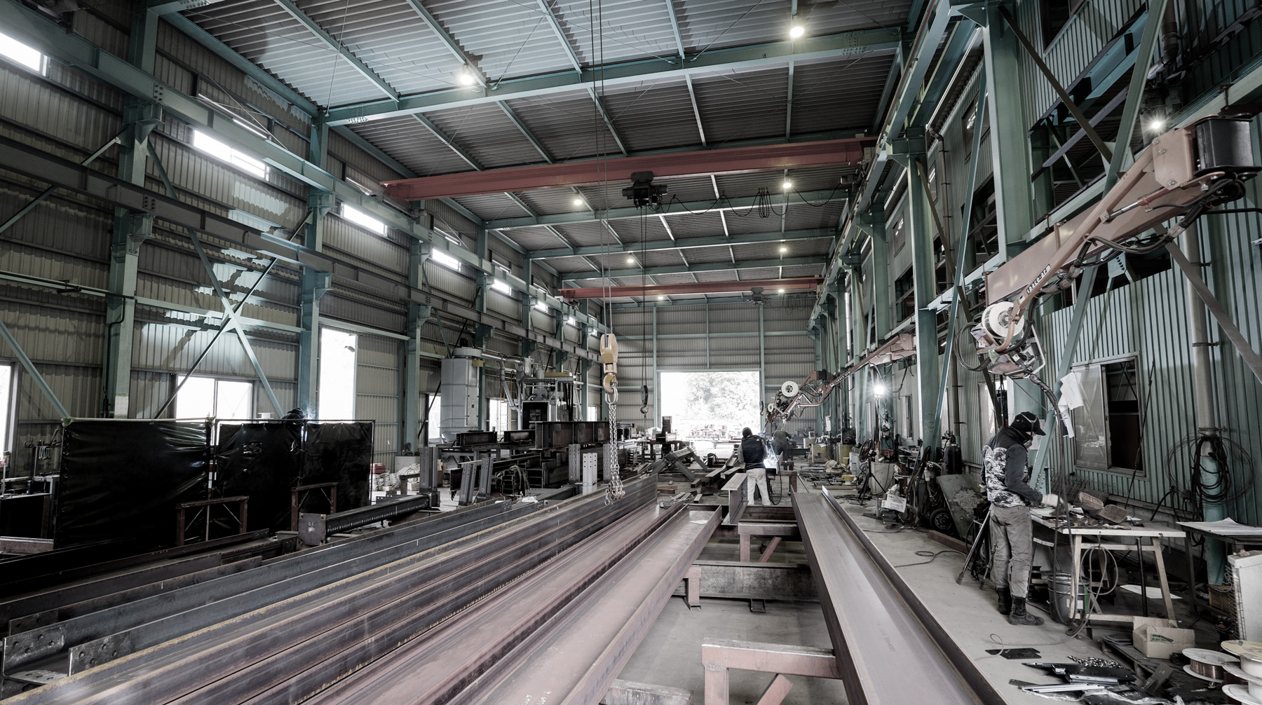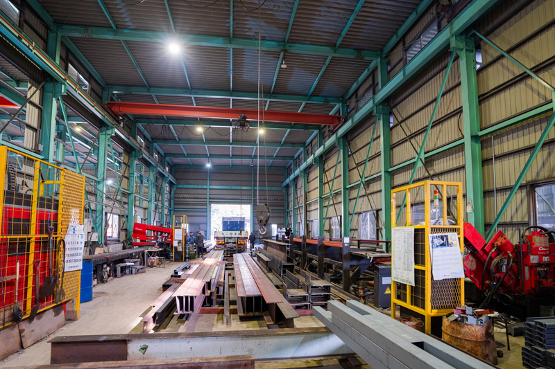 主に工場・事務所・店舗・倉庫・住宅・温室・架台等の各種建築物の鉄骨加工及び建方、取付や付帯する工事まで対応が可能です。